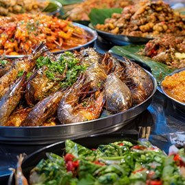 Delicious hot food for breakfast, lunch and dinner including Eggs Benedict, salads and lamb wraps